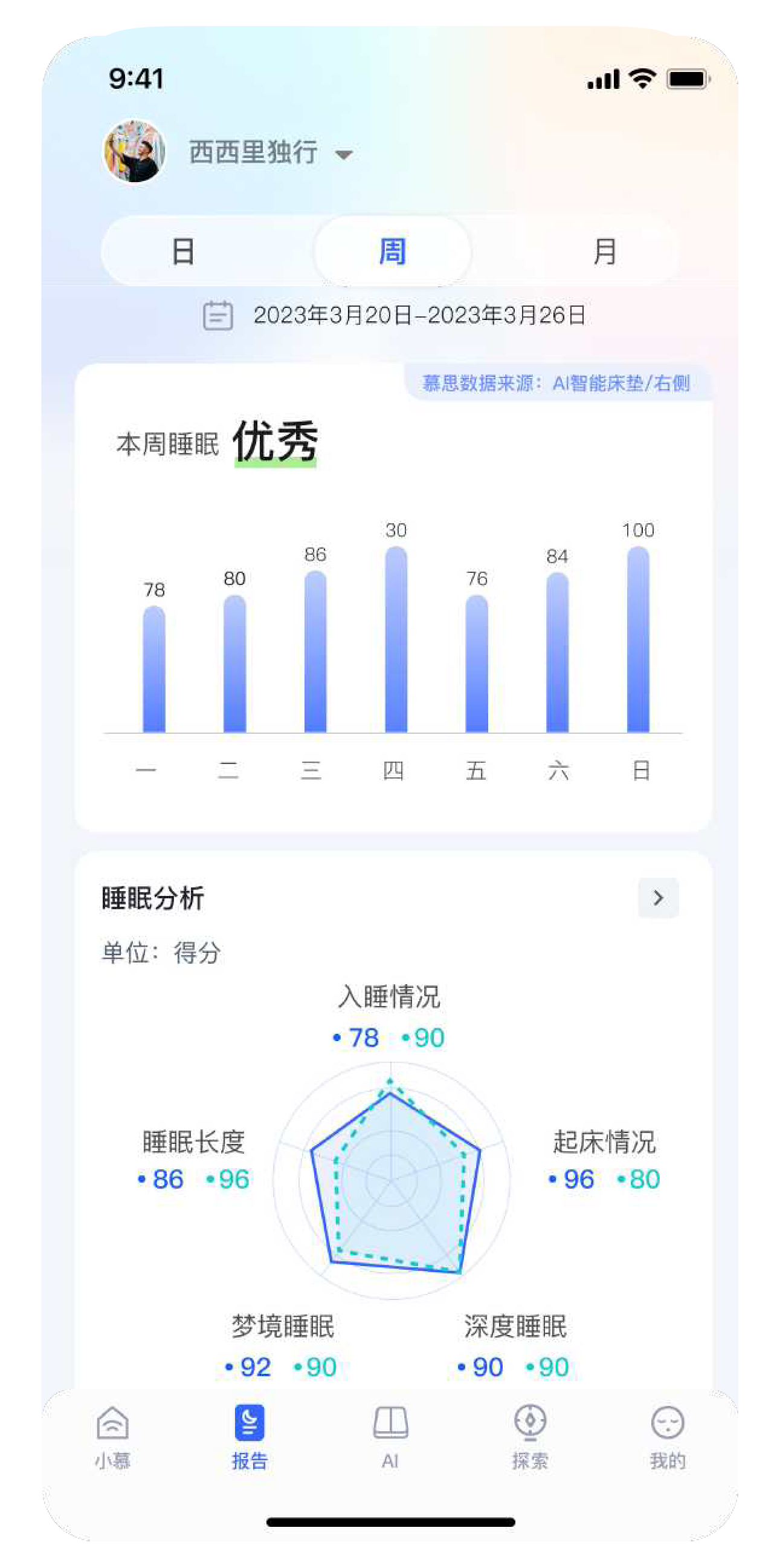 睡眠数据上传云端生成直观易懂的睡眠报告和睡眠建议,