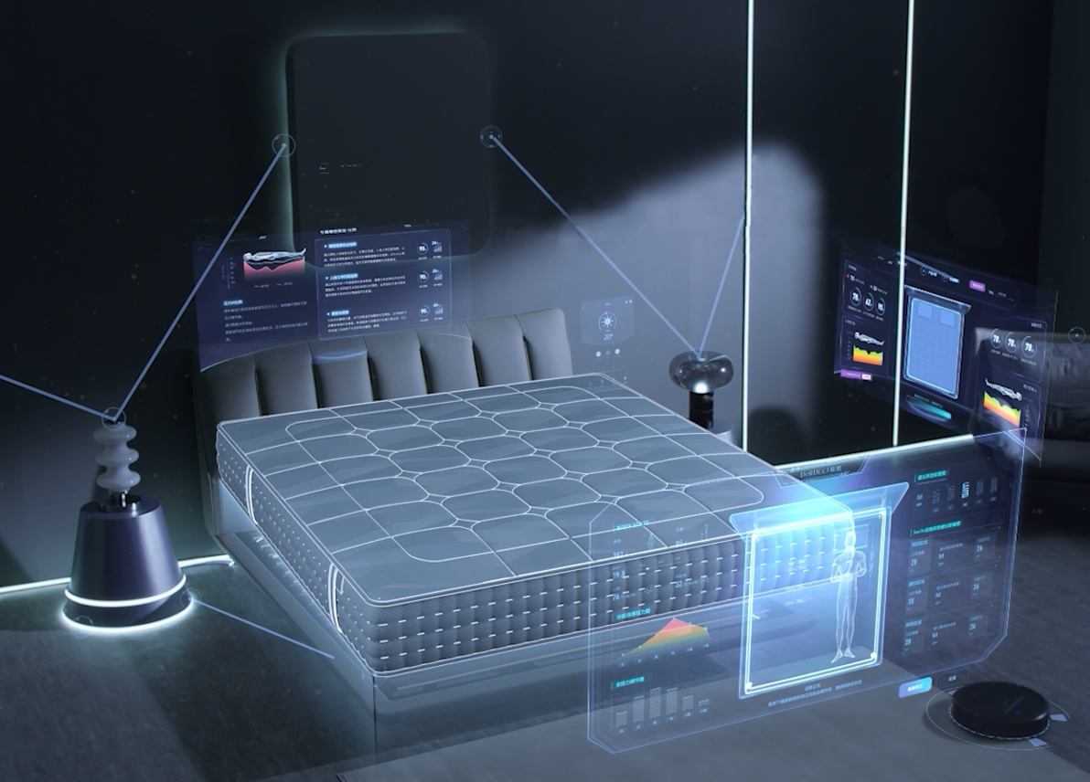 床垫内置睡眠探测器,采用非接触式睡眠检测技术及心肺耦合技术,