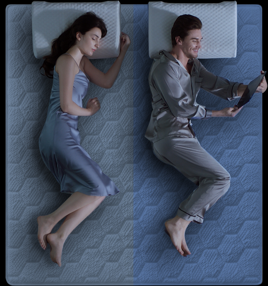 基于j9.com智能调节专利技术,床垫左右两边独立调节,满足夫妻双方不同体型及睡姿变化的睡感需求,私人专属睡眠,互不影响。